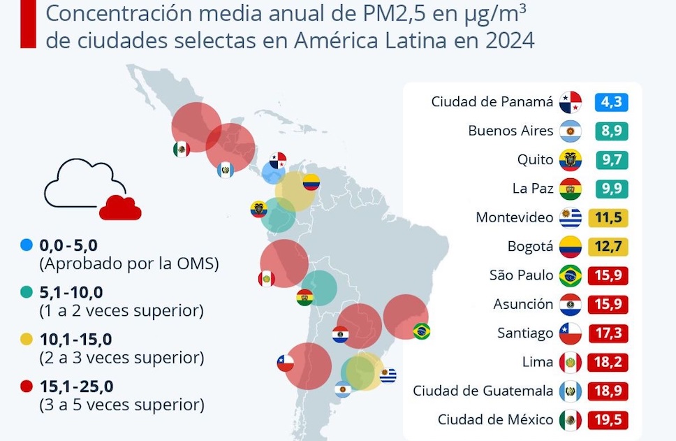 De acuerdo con el reporte de la calidad del aire mundial publicado anualmente por IQAir, solo siete países alcanzan los estándares estipulados por la Organización Mundial de la Salud (OMS). Y de esas siete naciones, solamente en Australia y Nueva Zelanda la concentración media anual de partículas en suspensión es menor a 2.5 micras (PM2.5) […]